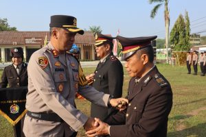 Kapolres Way Kanan Pimpin Penyerahan Jabatan dan Pelepasan Purna Tugas 2 Anggota Polri