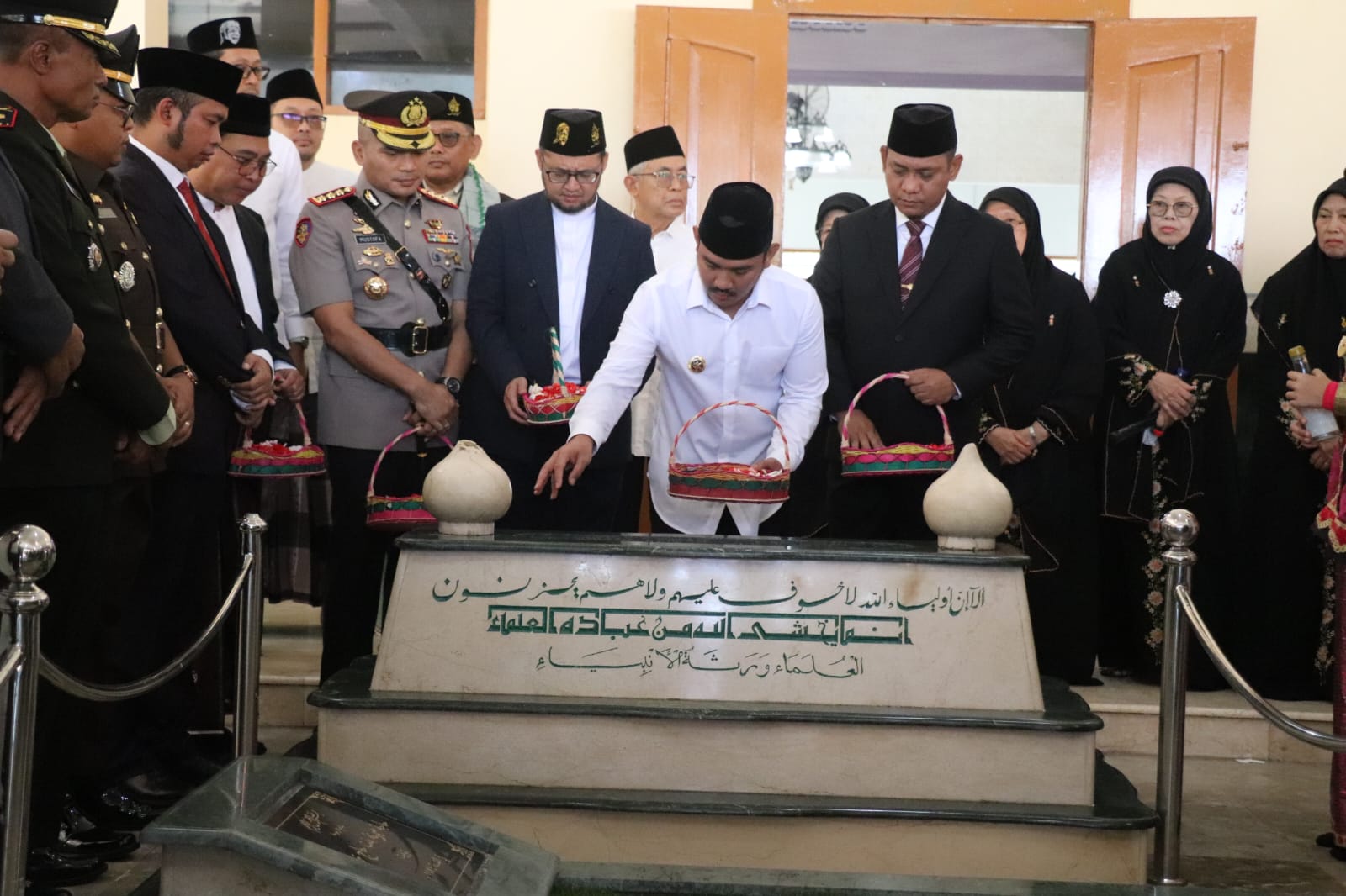 Bupati Bekasi Ade Kuswara Kunang bersama Wakil Bupati Asep Surya Atmaja dan jajaran Forkopimda serta tokoh agama, menggelar kegiatan Istigosah dan Tabur Bunga di Makam Pahlawan Nasional KH Noer Ali yang berada di Komplek Pondok Attaqwa Putri, Kelurahan Bahagia, Kecamatan Babelan, pada Sabtu (16/08/2025).