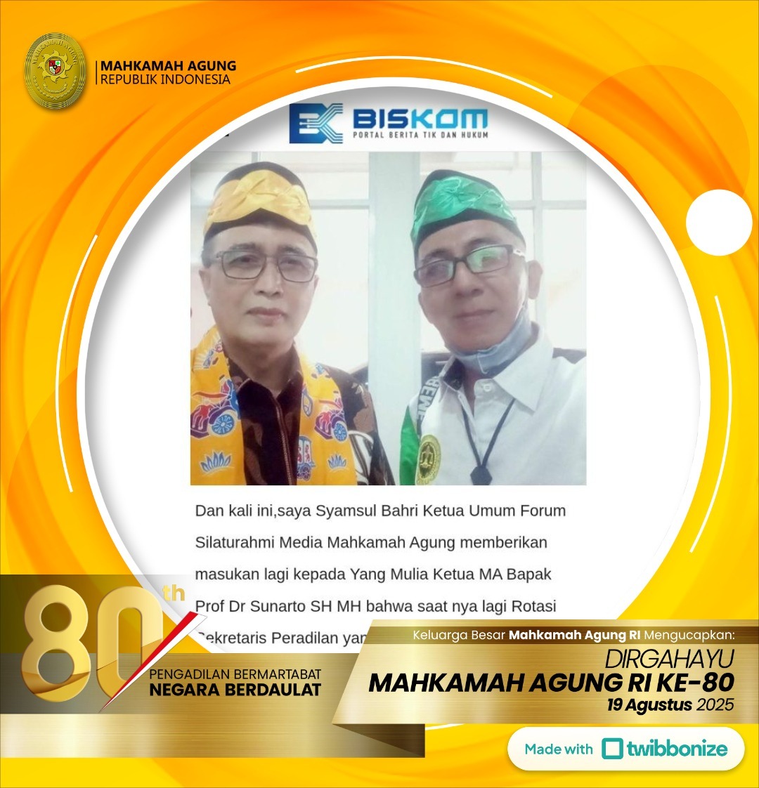 Di Hari Ulang Tahun Mahkamah Agung Republik Indonesia yang ke-80 adalah Wujud Komitmen Peradilan Agung guna menjaga harkat serta martabat dan Marwah institusi Hukum di Indonesia.