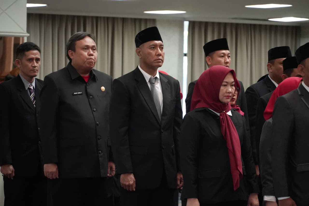 Gubernur Lampung diwakili Sekdaprov Marindo Kurniawan melantik 62 Pejabat Administrator dan 34 Pejabat Fungsional di lingkungan Pemerintah Provinsi Lampung, di Balai Keratun Lt.III, Jumat (22/8/2025).