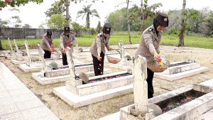Tulang Bawang – Polisi Wanita (Polwan) Polres Tulang Bawang, Polda Lampung, menggelar kegiatan ziarah dan tabur bunga guna menyambut Hari Jadi ke -77 Tahun 2025.