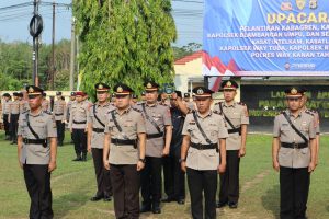 Polres Way Kanan gelar upacara pelantikan Kabagren, Kasihumas, Kapolsek Blambangan Umpu dan serah terima Jabatan Kasatlantas, Kasat Intelkam, Kapolsek Kapolsek Way Tuba dan Kapolsek Rebang Tangkas bertempat di lapangan apel Parama Satwika Polres Way Kanan. Sabtu (30/08/2025).