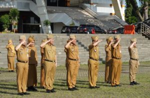 Gubernur Lampung yang diwakili Staf Ahli Bidang Kemasyarakatan dan SDM, Lukman Pura memimpin Apel Mingguan di lingkungan Sekretariat Daerah Provinsi Lampung, bertempat di Lapangan Korpri Komplek Kantor Gubernur, Senin (15/09/2025).