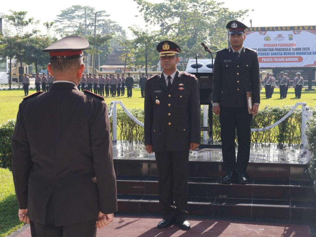 Wakapolres Tulang Bawang, Kompol David J. Sianipar, S.I.K., M.H., Mewakili Kapolres Tulang Bawang AKBP Yuliansyah,S.I.K, M.H, memimpin langsung pelaksanaan Upacara Hari Kesaktian Pancasila, yang digelar pada hari Rabu (01/10/2025), bertempat di Lapangan Mapolres Tulang Bawang.