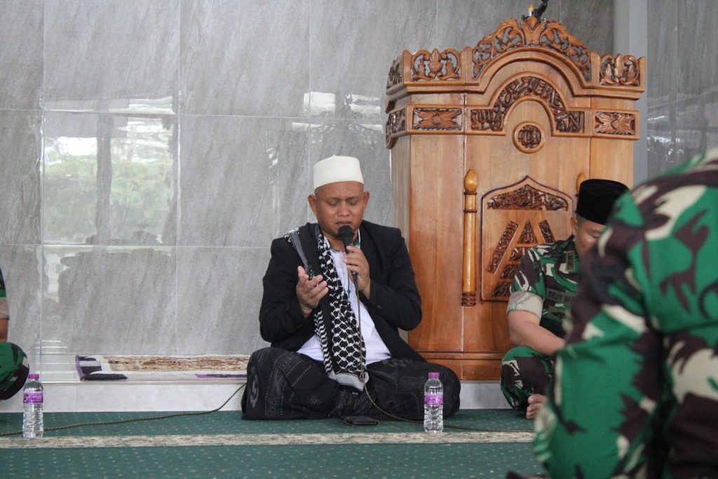 Suasana khidmat dan penuh kekhusyukan tampak saat Ustad Hartono memimpin doa, memohon kepada Allah SWT agar TNI senantiasa diberi kekuatan, keselamatan, dan keberkahan dalam menjalankan tugas menjaga kedaulatan serta keutuhan Negara Kesatuan Republik Indonesia (NKRI).