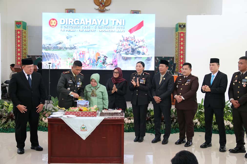 Selanjutnya dilanjutkan dengan syukuran peringatan HUT TNI Ke-80 bertempat di Aula Gatot Subroto Makodim. Pada kesempatan tersebut Bupati Ela Siti Nuryamah menyampaikan,