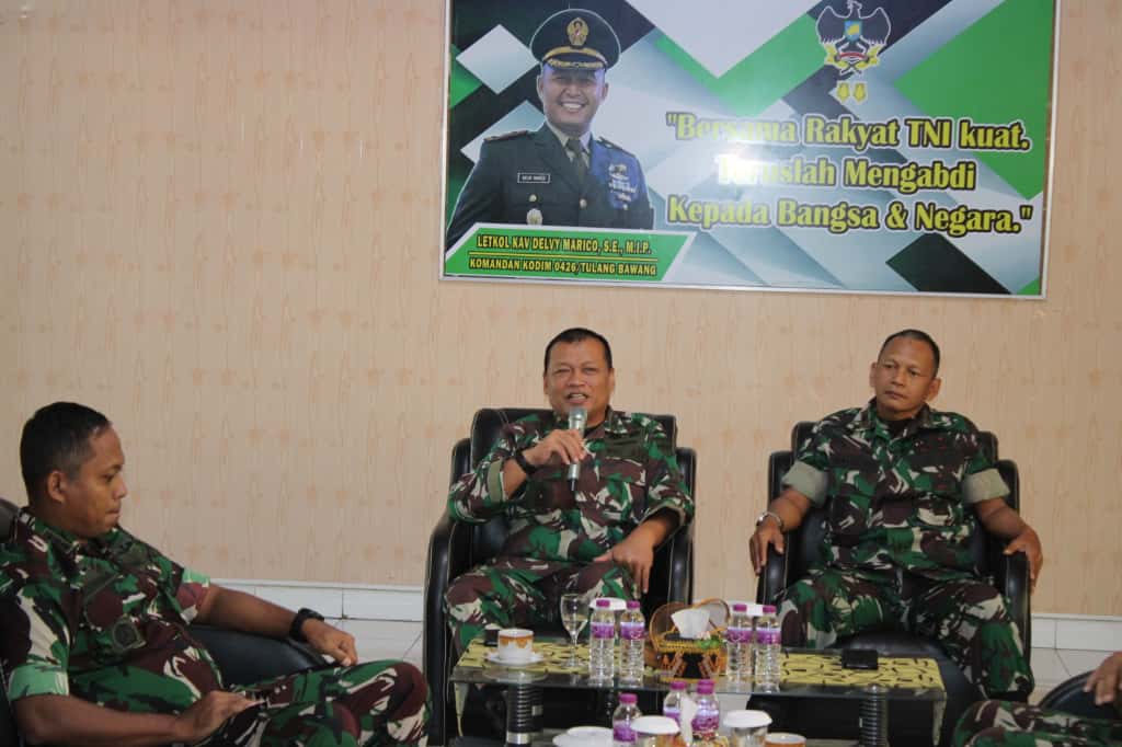 Kedatangan tim verifikasi yang dipimpin oleh Kasiter Kasrem 043/Gatam, Kolonel Inf Jaka Sutanta, S.Sos., M.M., serta Wakil Ketua Tim, Kasiren Korem 043/Gatam, Kolonel Czi Kurniawan Hartanto, S.E., M.Han., disambut hangat oleh Pabung Mesuji Mayor Inf Arif Affuan bersama para Perwira Staf Kodim 0426/TB di ruang transit Makodim.