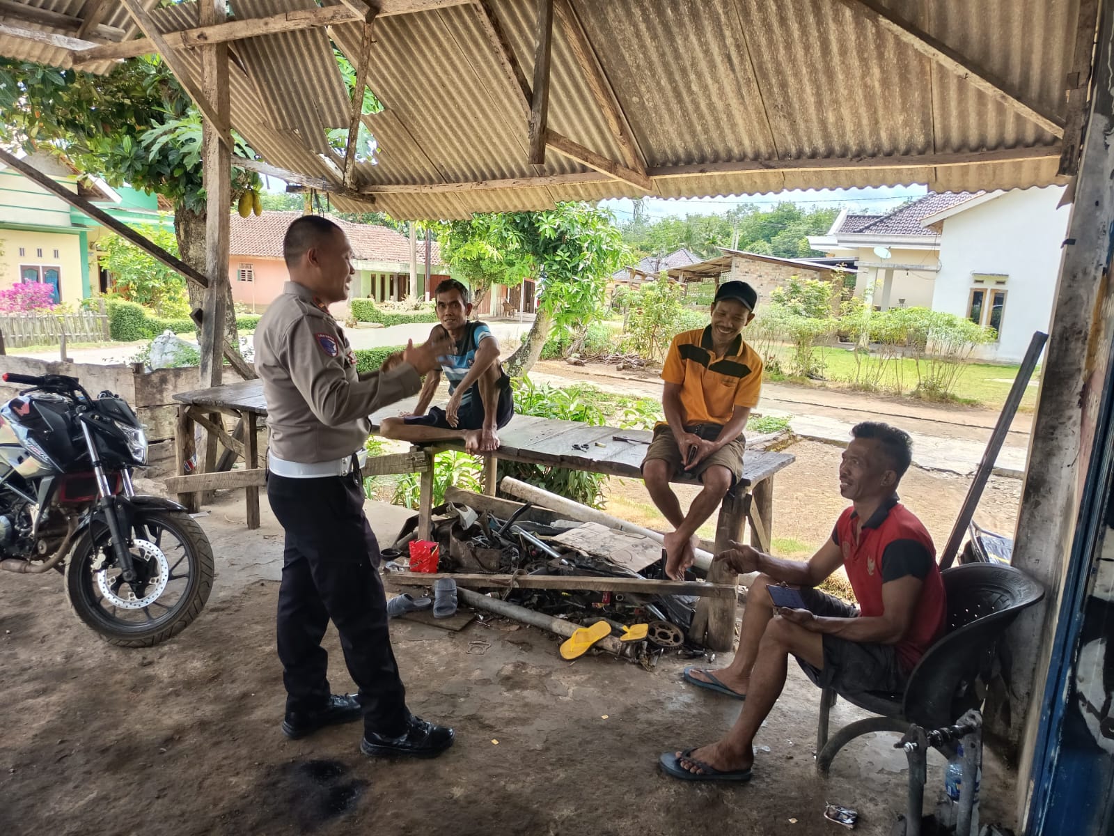 Satlantas Polres Way Kanan melaksanakan kegiatan Polantas Menyapa dengan warga di wilayah Kampung Gistang Kecamatan Umpu Semenguk Kabupaten Way Kanan. Senin (03/11/2025).