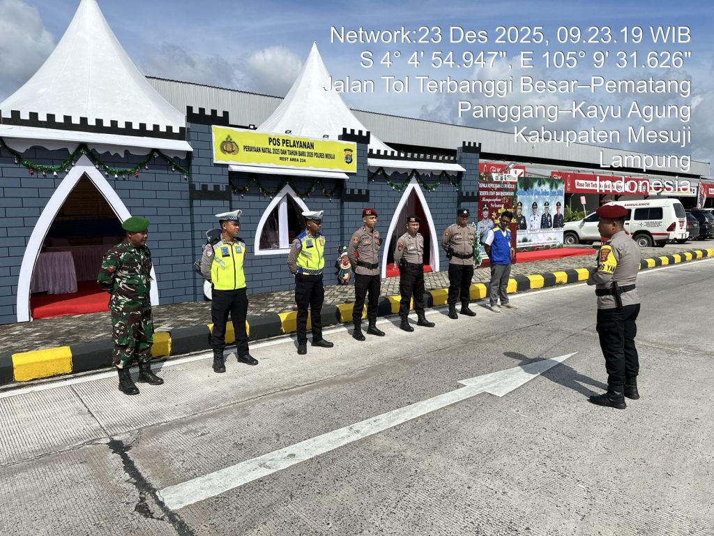 Mesuji — Dalam rangka menjamin keamanan dan kenyamanan masyarakat menjelang perayaan Natal 2025 dan Tahun Baru 2026, Kodim 0426 Tulang Bawang bersama Polres Mesuji melaksanakan pengecekan Pos Pelayanan Operasi Lilin Mahakam 2025 di Rest Area 234 Kabupaten Mesuji, pada Selasa 23 Desember 2025.