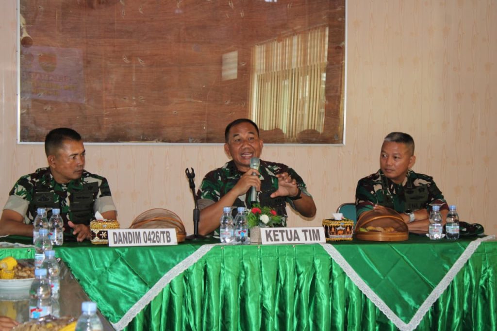 Dalam sambutannya, Dandim 0426/TB mengucapkan selamat datang kepada Ketua Tim Audit beserta rombongan. Ia menyampaikan apresiasi atas pelaksanaan audit internal tersebut.