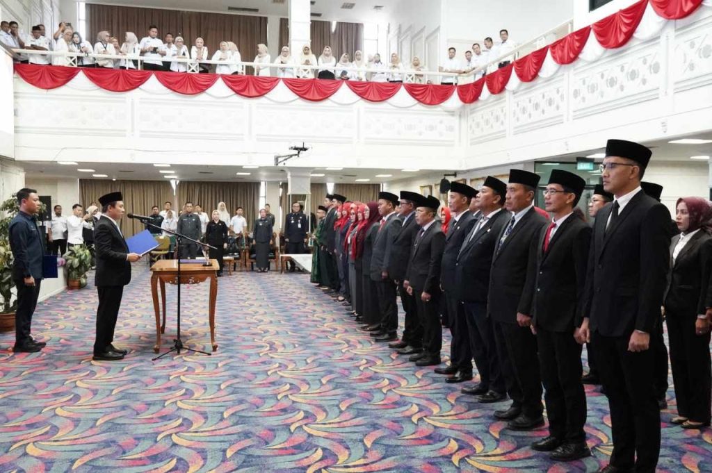 Gubernur Lampung diwakili oleh Sekretaris Daerah Provinsi Lampung, Marindo Kurniawan melantik sekaligus mengambil sumpah jabatan Pejabat Administrator dan Pejabat Pengawas di Lingkungan Pemerintah Provinsi Lampung yang digelar di Balai Keratun Lantai III, Kompleks Kantor Gubernur Lampung, Rabu (21/01/2026).