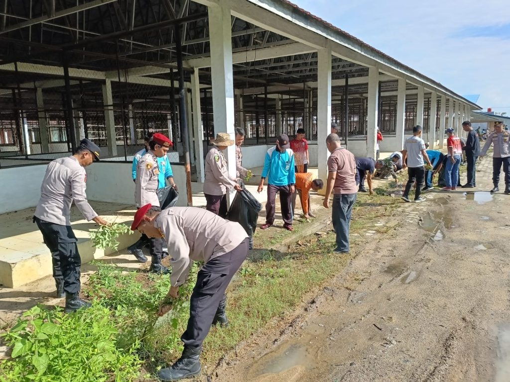 Polres Way Kanan bersama TNI hingga Pemkab. Way Kanan melakukan kurve membersihkan lingkungan di Pasar Km. 02 Kelurahan Blambangan Umpu Kecamatan Blambangan Umpu Kabupaten Way Kanan. Kamis (05/02/2026).