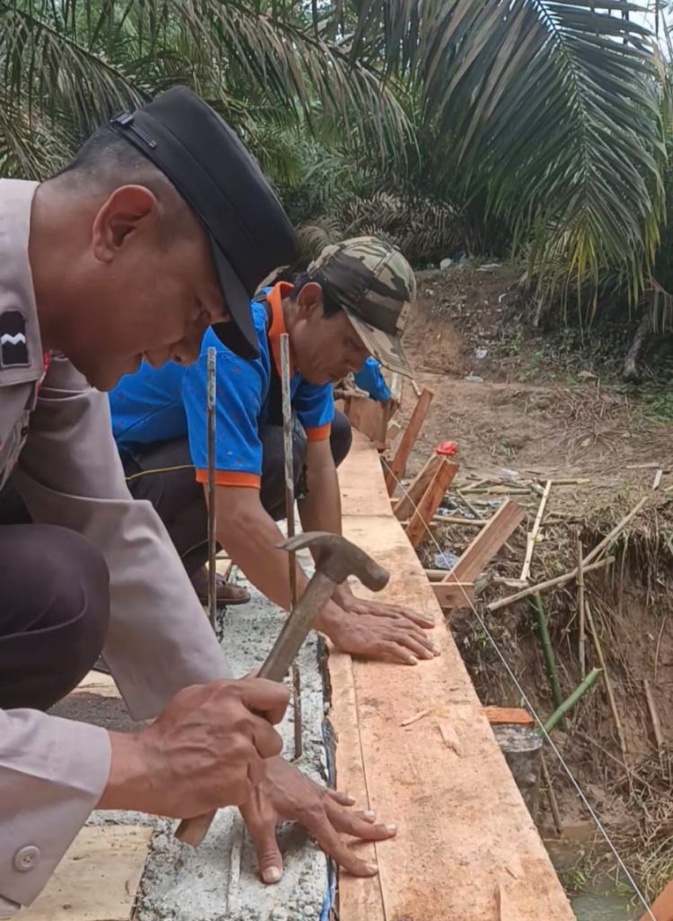 Dengan semangat gotong royong, personel Kanit Binmas Aipda Irawan bersama Aparatur Kampung Sukadana dan warga setempat bahu-membahu mengerjakan pembangunan jembatan menggunakan material batu, pasir, semen dan papan hingga pengecoran beton, demi memastikan aktivitas masyarakat tidak terputus, khususnya anak-anak sekolah, dapat berjalan dengan lancer dan aman dilalui.
