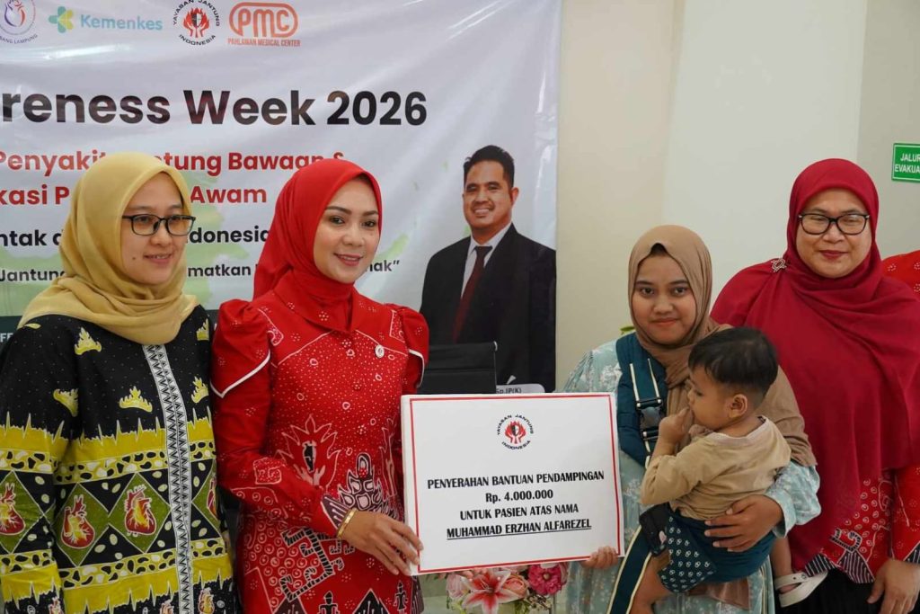Komitmen tersebut ditegaskan oleh Ketua YJI Provinsi Lampung, Purnama Wulan Sari Mirza dalam Congenital Heart Disease (CHD) Awareness Week atau Pekan Kesadaran Penyakit Jantung Bawaan 2026 yang dilaksanakan di Klinik Pahlawan Medical Center (PMC), Bandar Lampung, Senin (9/2/2026).