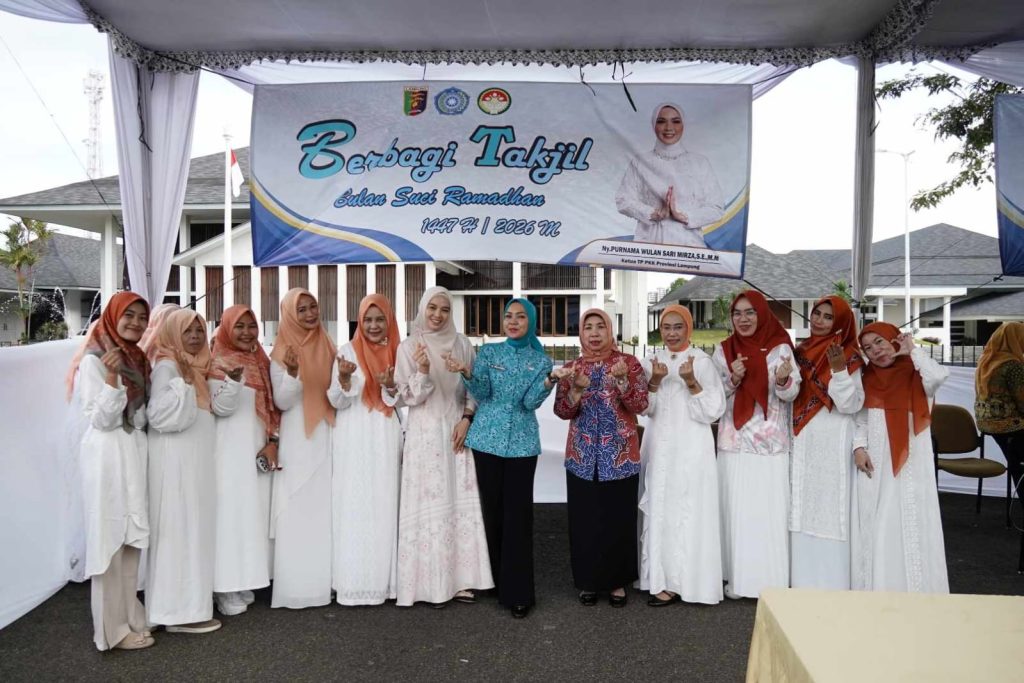 Tim Penggerak PKK Provinsi Lampung bersama Dharma Wanita Persatuan (DWP) Provinsi Lampung kembali membagikan paket berbuka puasa kepada masyarakat di depan Mahan Agung, Kamis (26/02/2026).