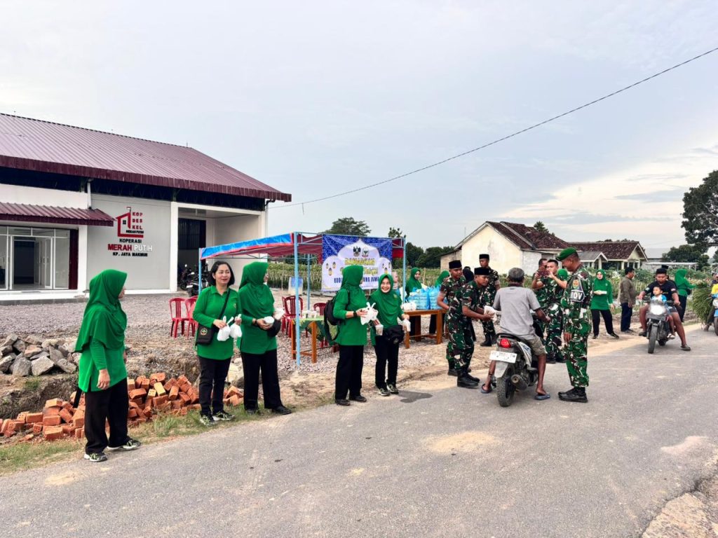 Bersama jajaran Kodim 0426 Tulang Bawang, Pasi Ter membagikan takjil gratis kepada pengguna jalan di Kampung Jaya Makmur, Kecamatan Banjar Baru, Kabupaten Tulang, pada Selasa 10 Maret 2026.