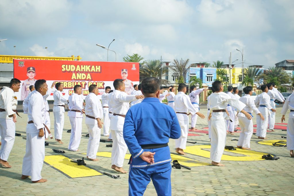 Sebanyak 75 personel Polres Ogan Komering Ilir (OKI) mengikuti ujian bela diri Polri sebagai syarat kenaikan pangkat periode 1 Juli 2026. Kegiatan berlangsung tertib dengan penilaian yang menitikberatkan pada penguasaan teknik dasar, ketahanan fisik, serta kedisiplinan peserta. Senin (27/4/26)