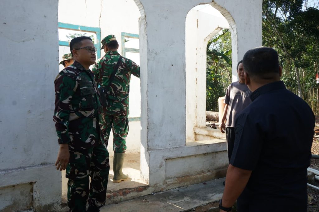 Komandan Kodim 0402/OKI-OI bersama Wakil Bupati Ogan Komering Ilir (OKI) meninjau langsung pembangunan mushola yang menjadi salah satu sasaran fisik dalam program TNI Manunggal Membangun Desa (TMMD), Minggu (26/04/2026)